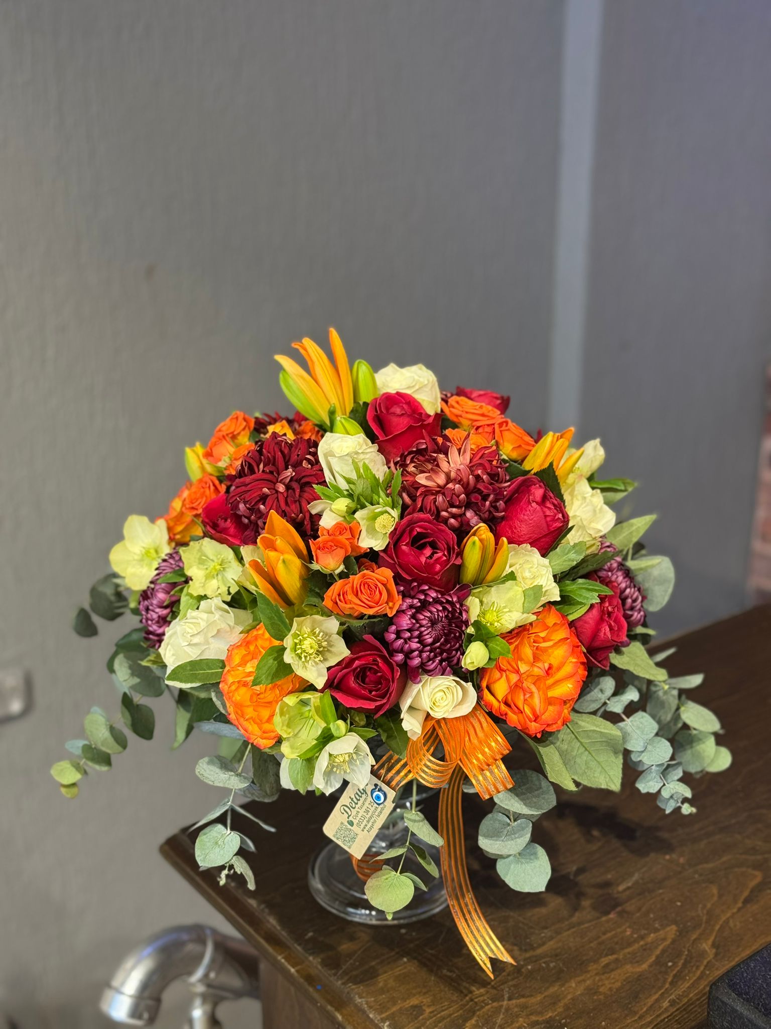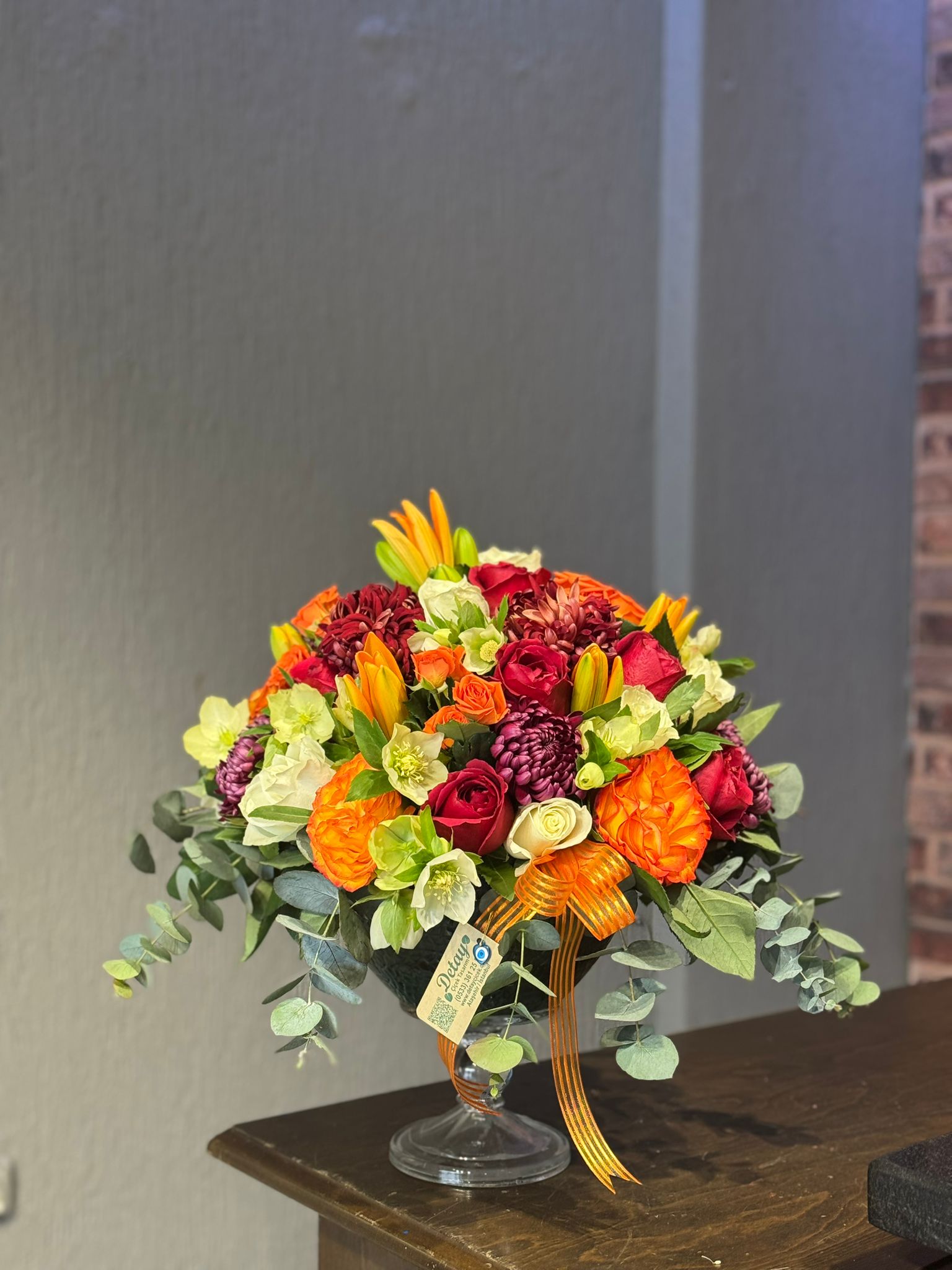 Cam vazo içersinde İthal çiçekler ile hazırlanır. Canlı çiçek aranjmanları mevsimsel olarak farklılık gösterebilir tasarım bütünlüğü bozulmadan hazırlanır. Ürünlerin tamamı canlı çiçeklerden oluşur